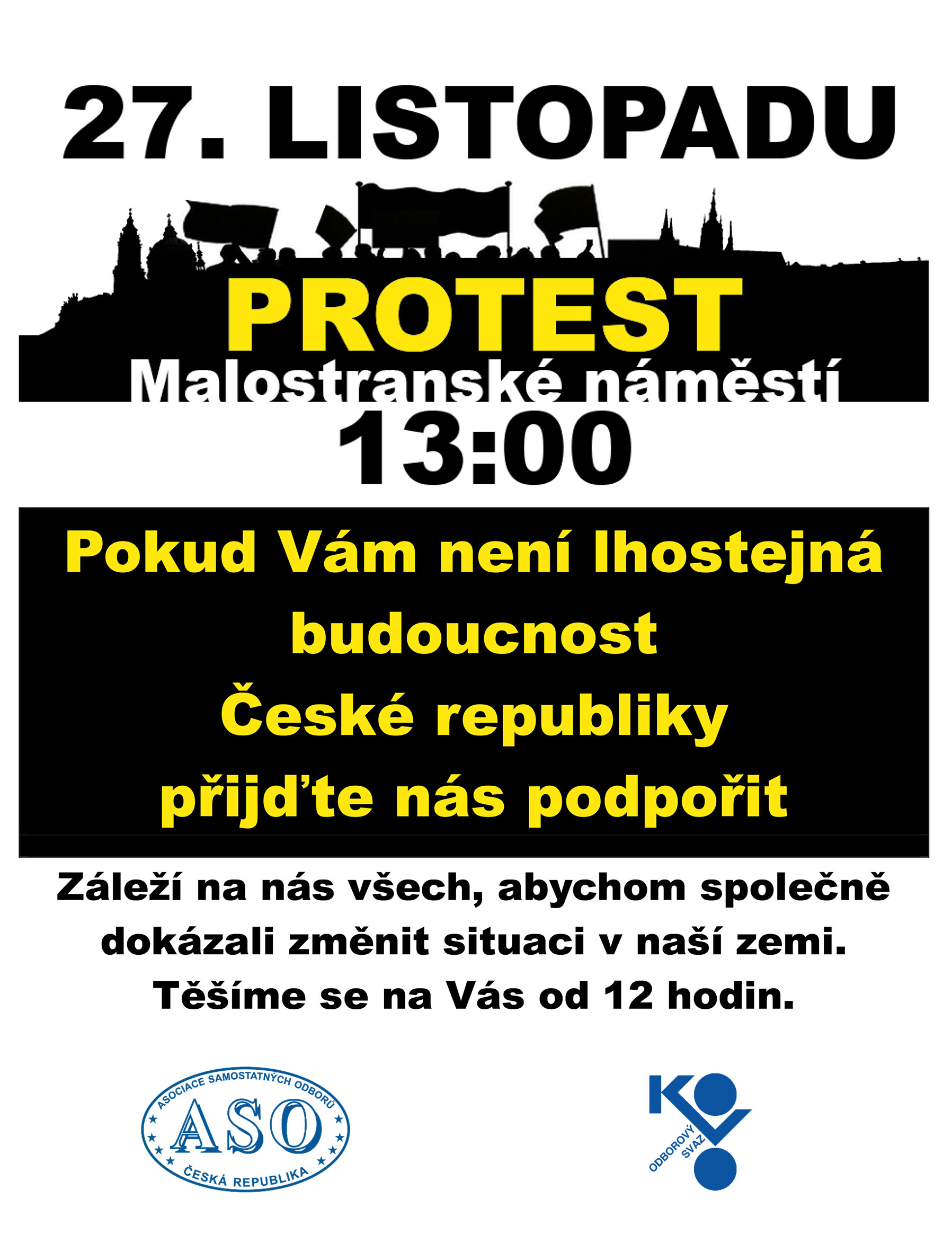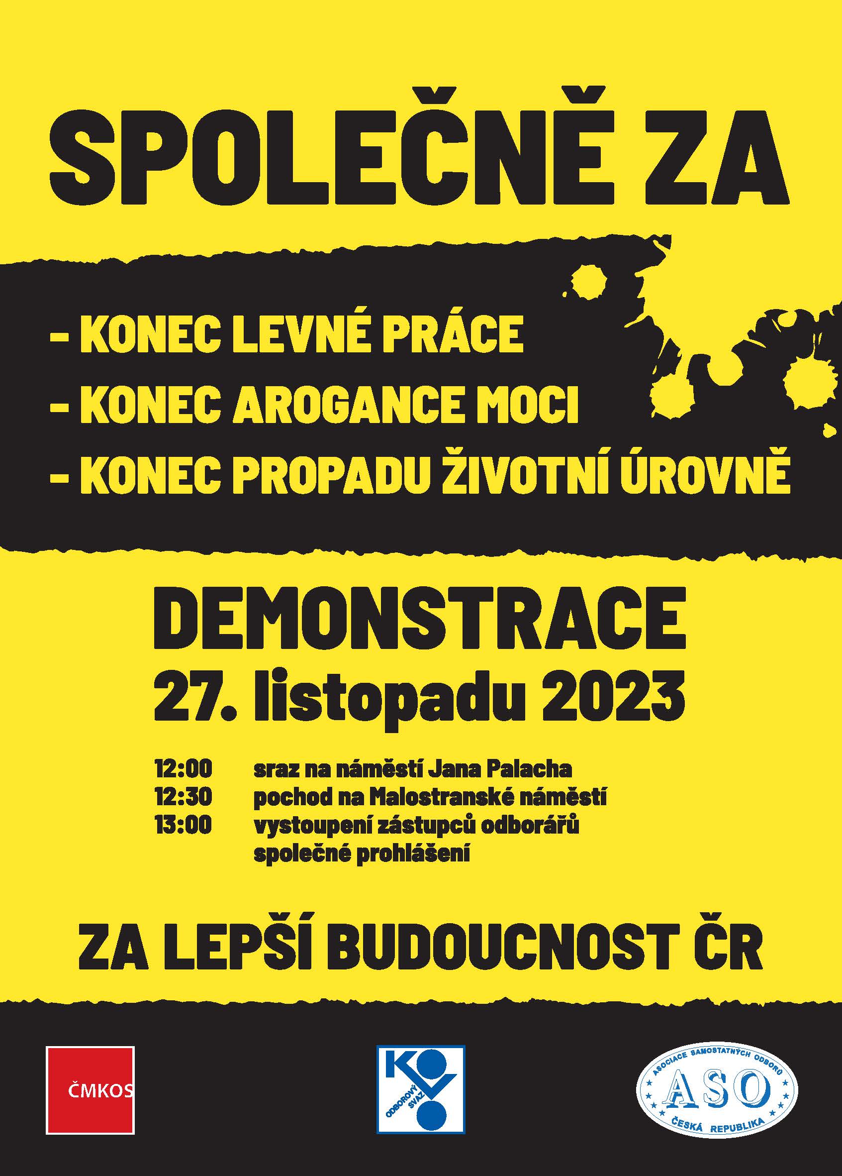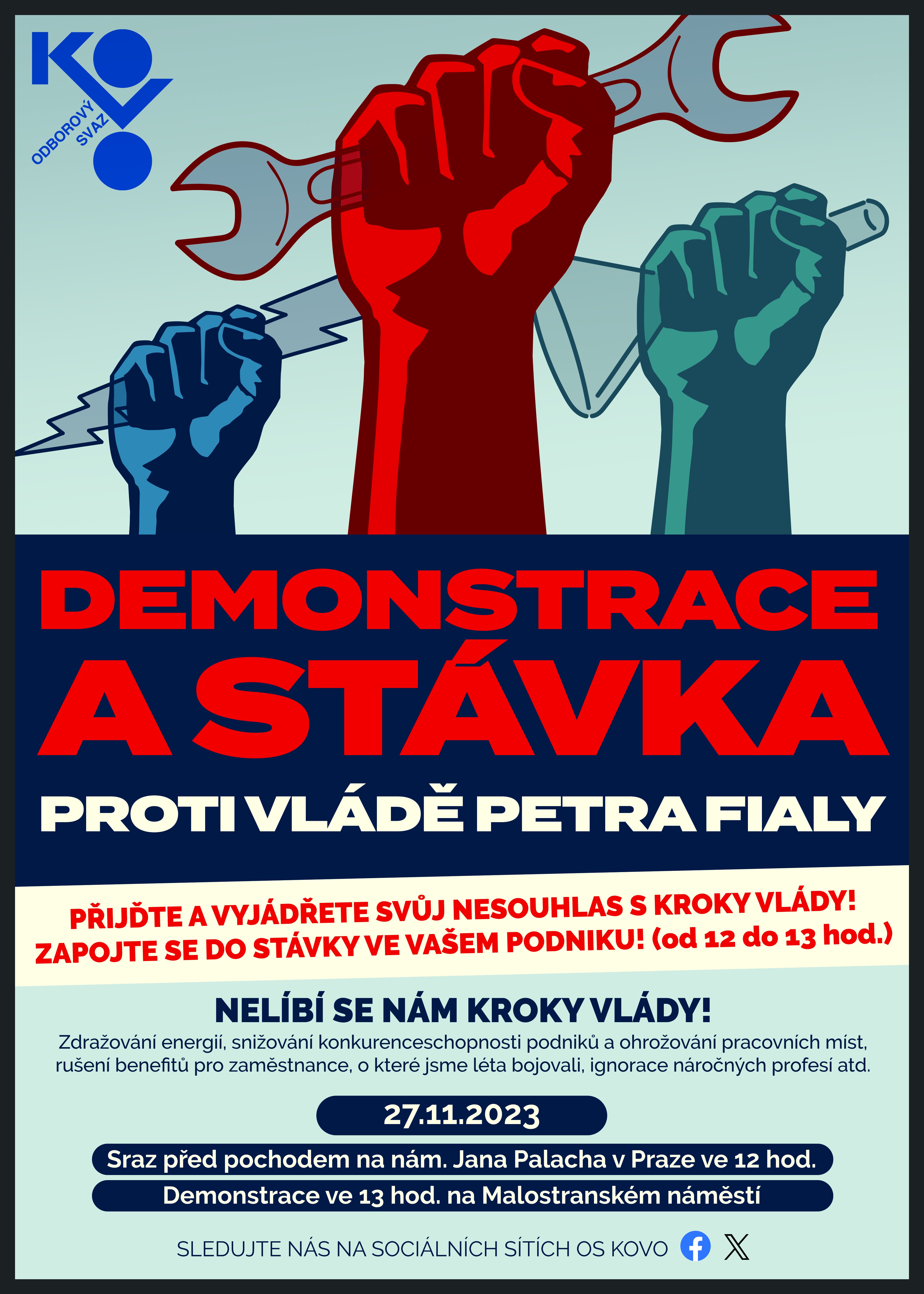 Odborový svaz KOVO společně s Asociací samostatných odborů na 27. listopad 2023 vyhlásil Demonstraci na Malostranském náměstí v Praze od 13:00 hodin.
